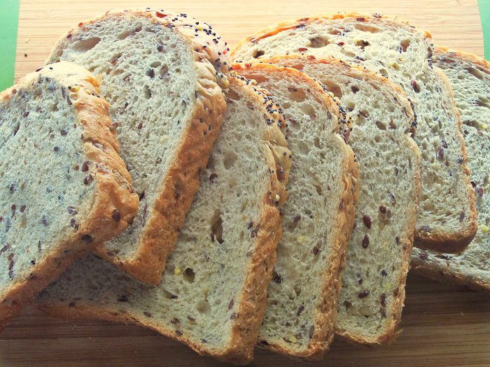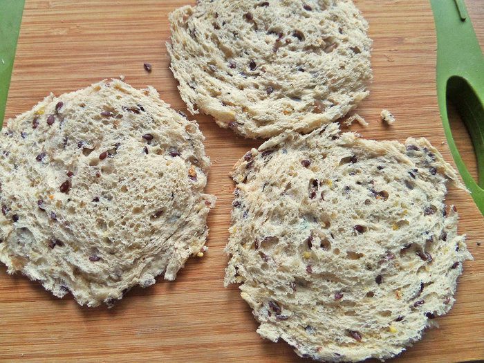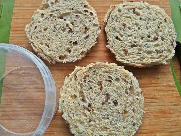 Хлеб у меня тостерный, обогащенный семечками.