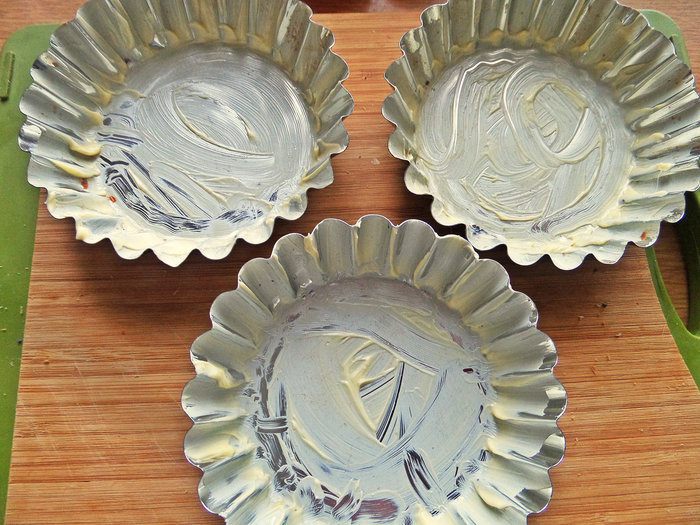 Формочки для тарталеток смазать мягким сливочным маслом.