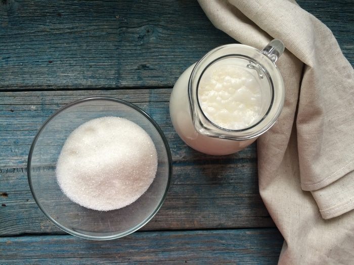 Приготовьте начинку. Поставьте сотейник со сливками и сахаром на средний огонь и доведите до кипения.