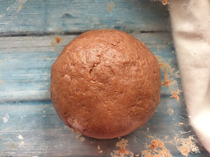 Переложите на присыпанную мукой поверхности и вымешивайте, пока масса не станет однородной (5-7 минут). Затем оберните тесто пленкой и уберите в холодильник на 20 минут.