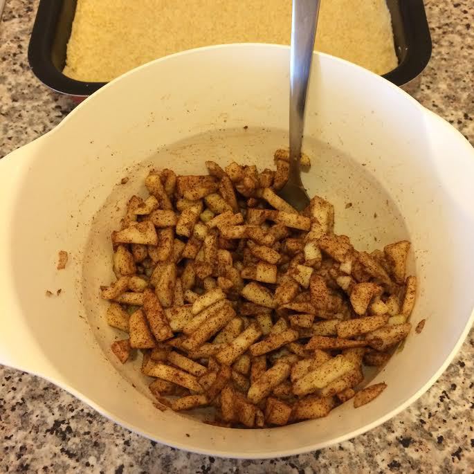 Яблоки очистить и мелко нарезать. Смешать с корицей.