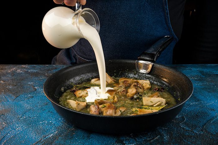 Добавить сливки и тушить еще 2 — 3 минуты.