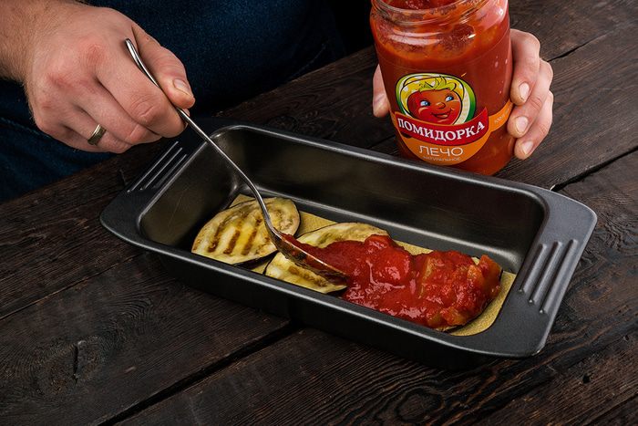 Готовим овощную лазанью из лаваша с лечо и баклажанами.