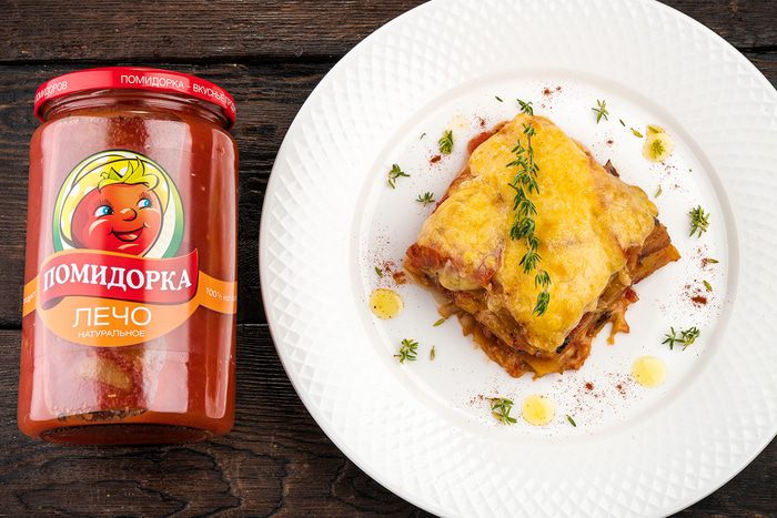 Сверху смазать лечо «Помидорка» и присыпать сыром.