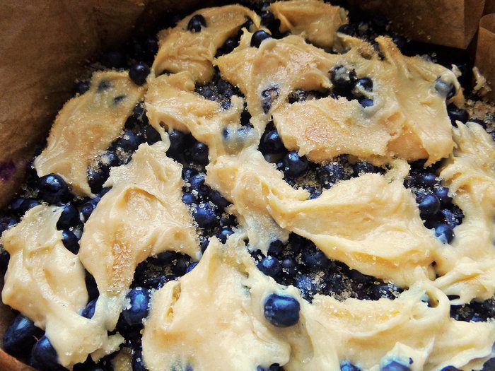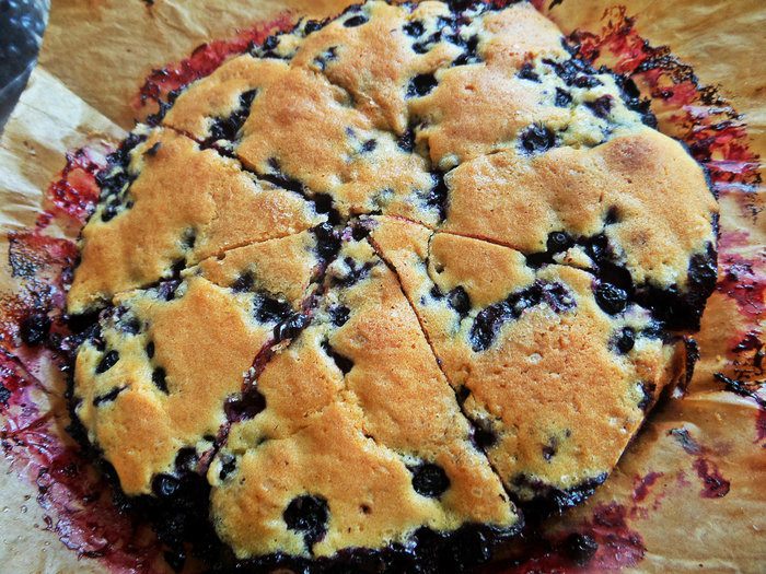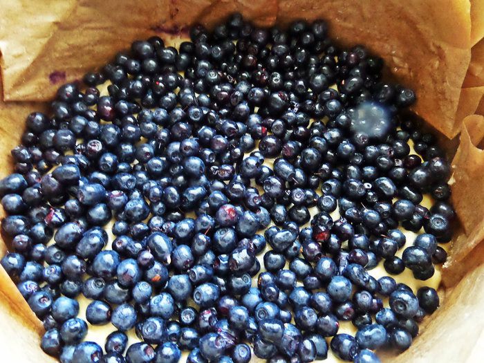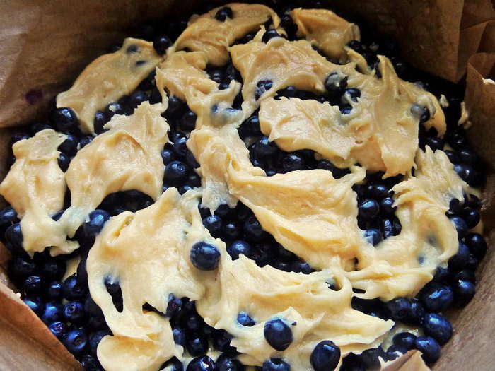 Съемную форму (у меня именно съемная 21 см в диаметре, а не разъемная, дно выталкивается через верх, обязательно нужна бумага для выпечки, но она всегда в доме) смазываем любым душистым маслом, рекомендую масло грецкого ореха от Biolio для дополнительного аромата леса ягодной выпечке. Выложить две третьих теста.