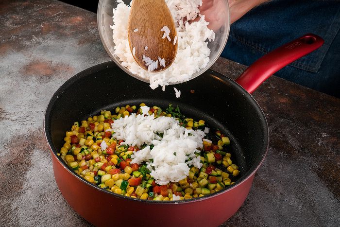Выложить к овощам отваренный рис, все перемешать.