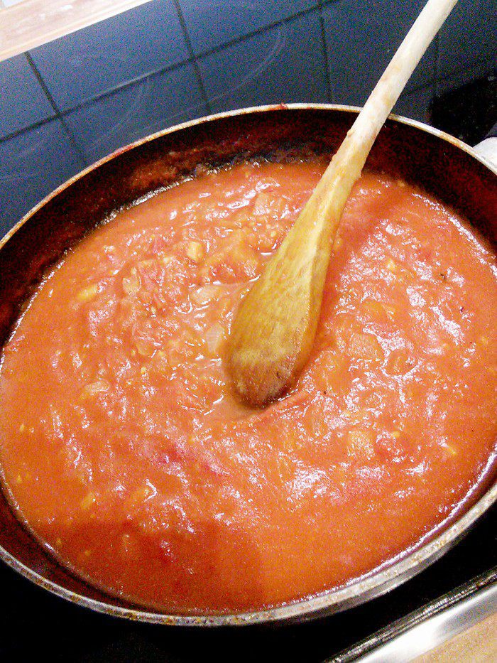 Для суго мелко порубить лук и чеснок, спассеровать на растительном масле до прозрачности, добавить мелко рубленные помидоры, тушить на маленьком огне без крышки минут 15. В конце тушения добавить соль, перец, чили-соус и сахар.