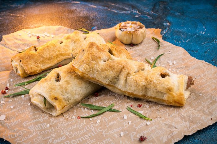 Выпекать рулетики при 220°С около 20 минут до румяного цвета. Ароматная и сытная закуска к вашему столу готова!