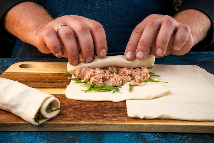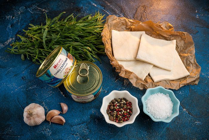 Готовим слоеные рулеты с тунцом и эстрагоном.