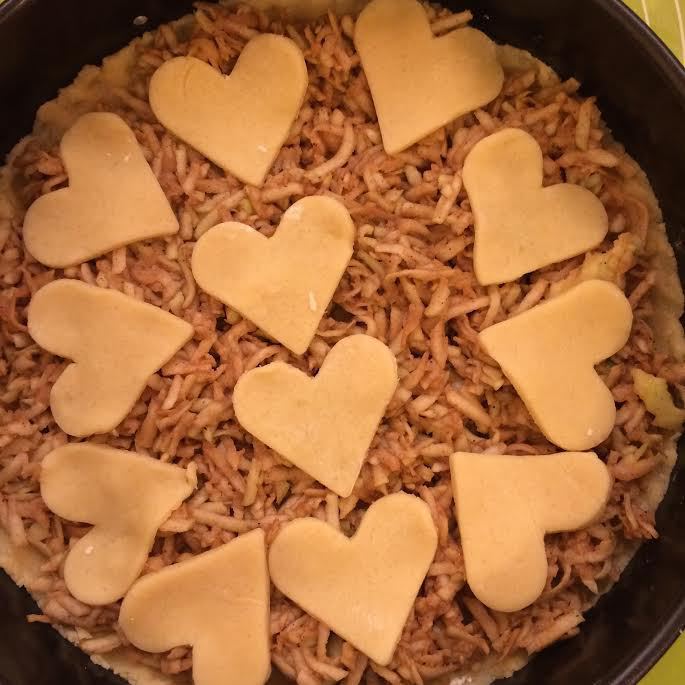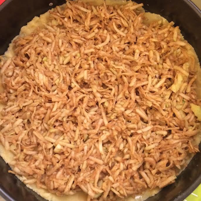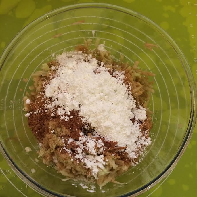 Начинка: яблоки очистить, натереть на крупной терке, добавить сахар, крахмал и корицу.