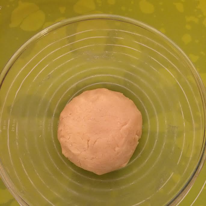 Замесить быстро тесто, сформировать шар, завернуть в пленку и отпрвить в холодильник на 30 минут.