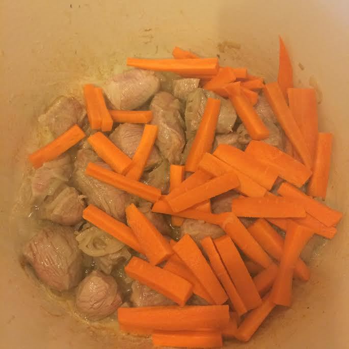 Добавить морковь, тушить 5 — 6 минут.