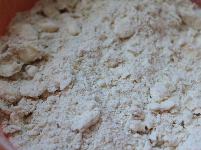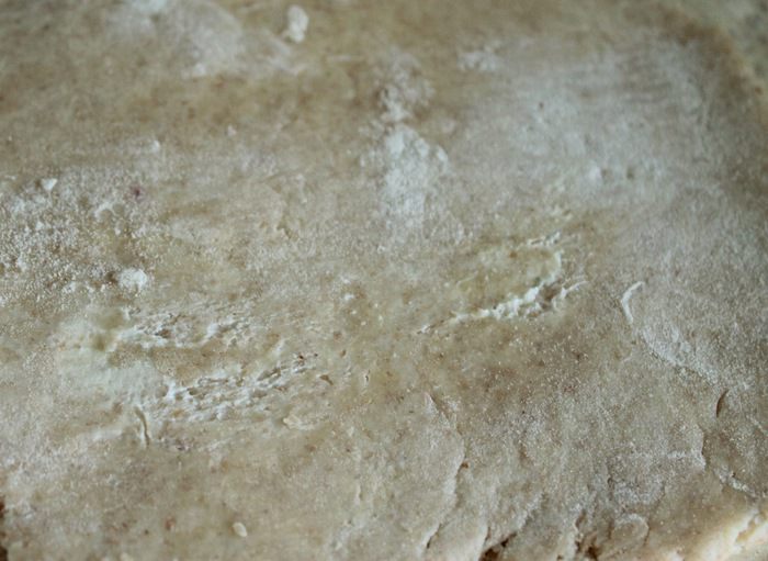 Смешать муку с солью, добавить масло и порубить до состояния крошки. Влить воду и быстро замесить неоднородное тесто с вкраплениями масла. Собрать тесто в шар и отправить в холодильник на 30 мин.