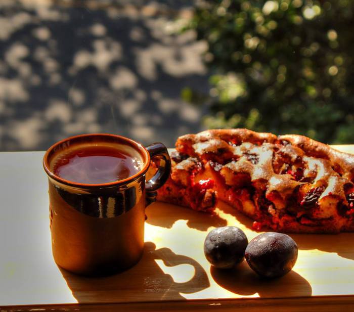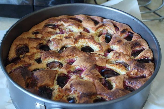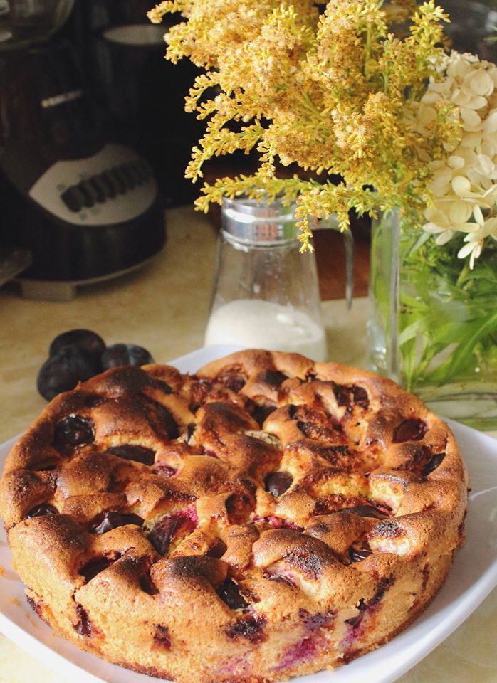 Пора слив в разгаре, кукурузно-миндальный пирог с ними действительно прекрасен :)