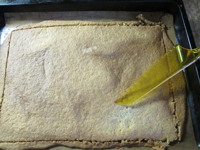 Выпекаем 6+1 минуту. После шести минут выпечки смотрим на корж, если он уже «загорелый», достаточно. При необходимости добавляем еще минуту. Я пеку в режиме верх-низ, поэтому на последней минуте либо ставлю сверху второй поддон, либо переключаю на режим «низ».