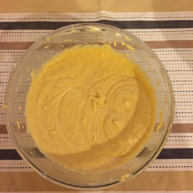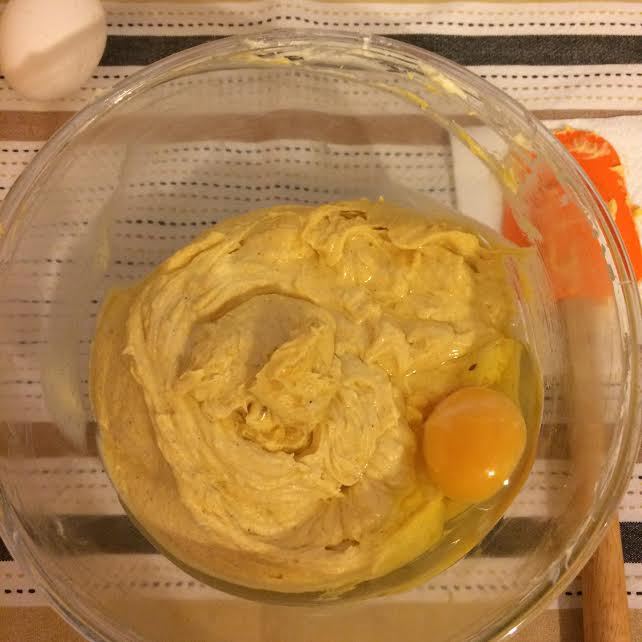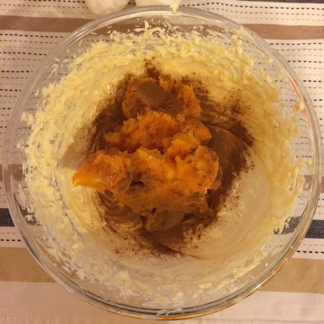 Добавить тыквенное пюре и корицу. Хорошо перемешать миксером на средней скорости.
