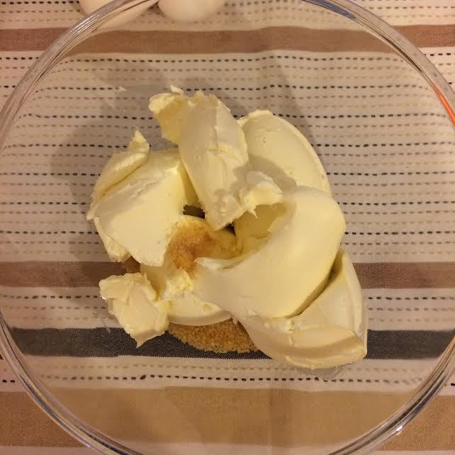 В миске взбить сахар и сливочный сыр до однородной массы.