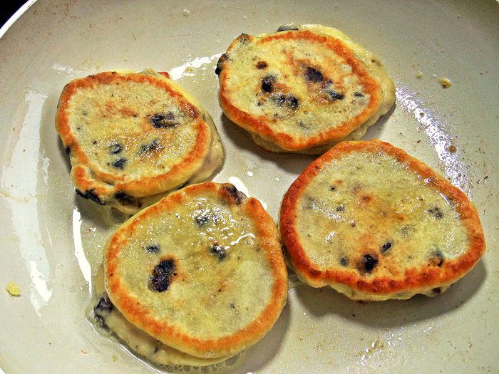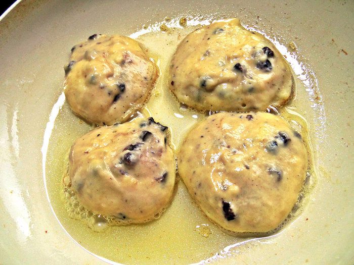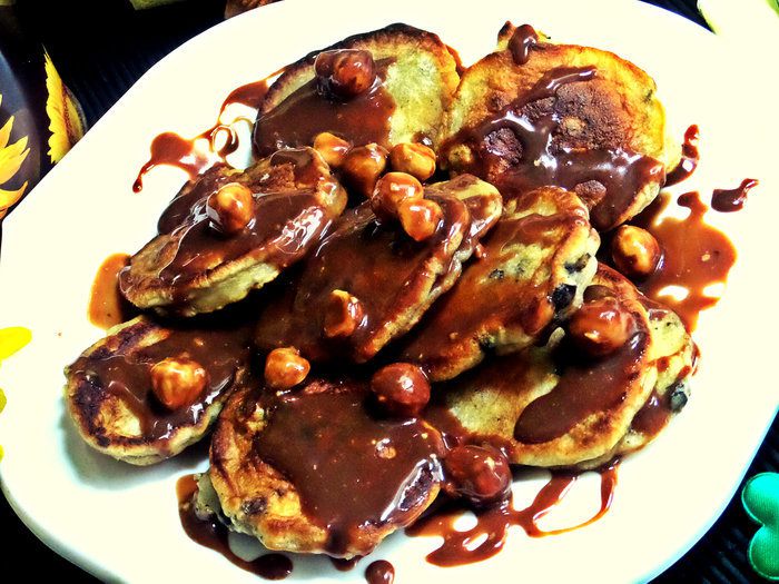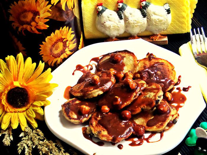Воскресным утром разбудите своих домашних ароматом оладий. Роль классического изюма сегодня выполнит черника, а соус из припрятанной заранее растопленной шоколадки сделает блюдо праздничным!
