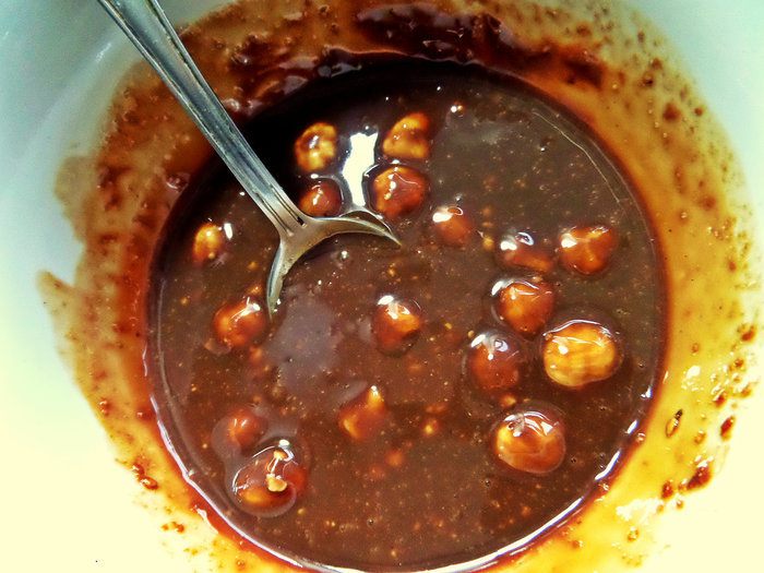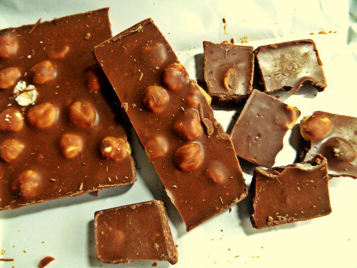 Для шоколадного соуса поломать шоколад на кусочки (у меня с фундуком).