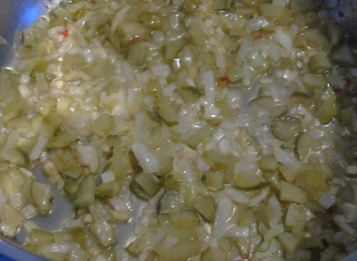 Добавьте нарезанные кубиками огурцы и потушите еще 3 минут.
