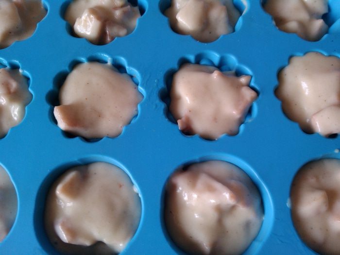 Тесто разложить по формочкам. Формочки предварительно смазать небольшим количеством растопленного сливочного масла, но можно и не делать этого. Поставить маффины в разогретую духовку и выпекать около 20 минут (время выпекания зависит от размера формочек и вашей духовки).