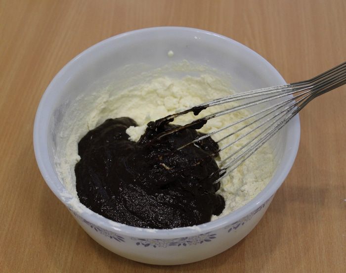 Соединить риккоту, муку и шоколадную смесь. Перемешать.