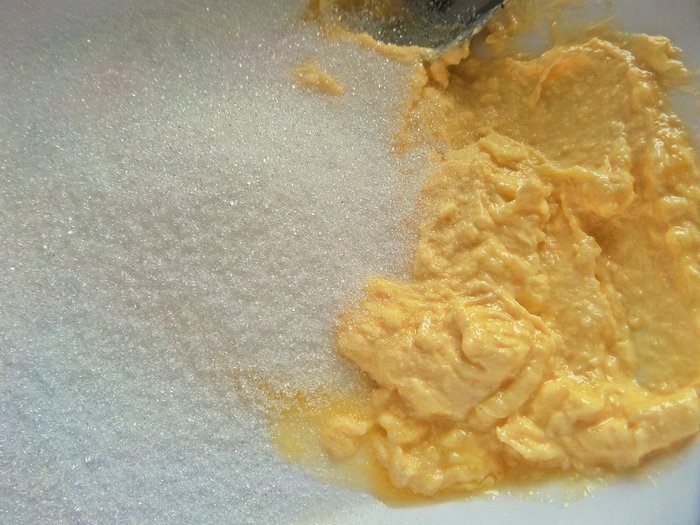 Масло достать заранее и растереть с сахаром.