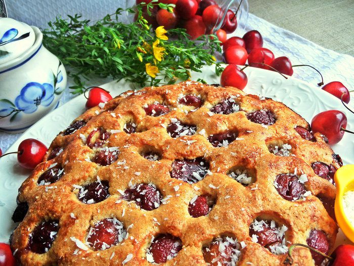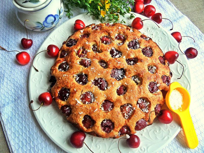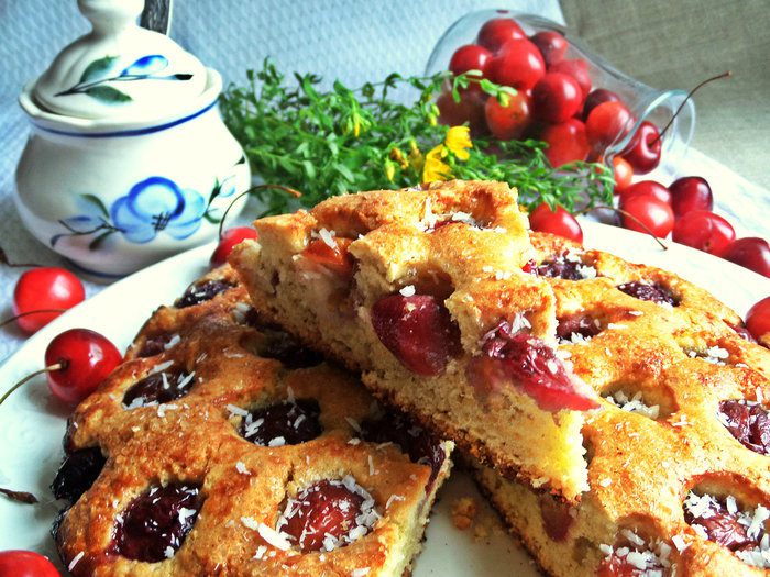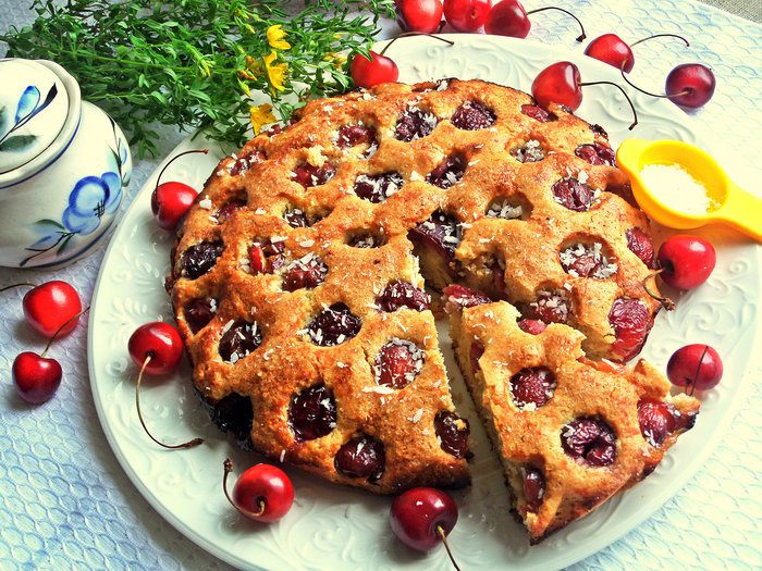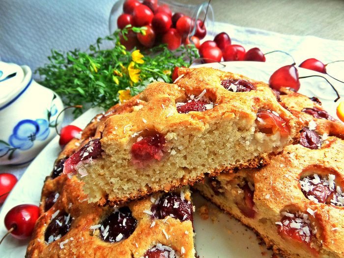 Вот такая у него рыхлая структура с бонусом в виде черешенки! Кого угощала, всем понравился.
