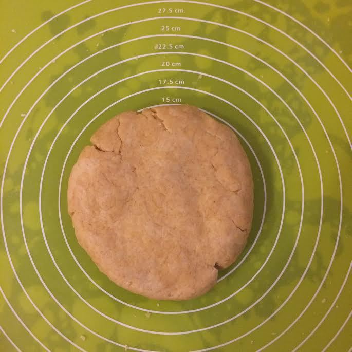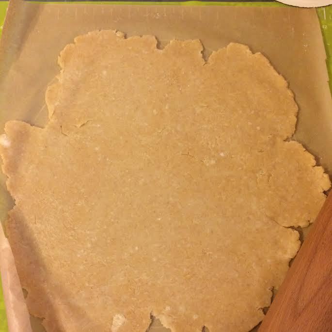 Духовку нагреть до температуры 180°C. Тесто раскатать на бумаге для выпечки.