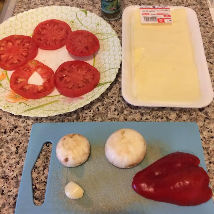 Помидор нарезать, посыпать солью и дать постоять 10 — 15 минут. Затем аккуратно промокнуть бумажным полотенцем.