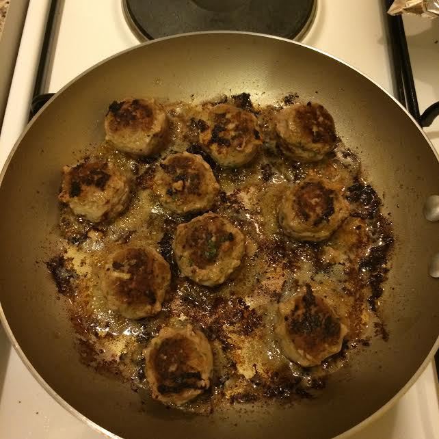 В сковороде разогреть 1 ст. л. сливочного и 1 ст. л. оливкового масла и обжарить тефтели со всех сторон.