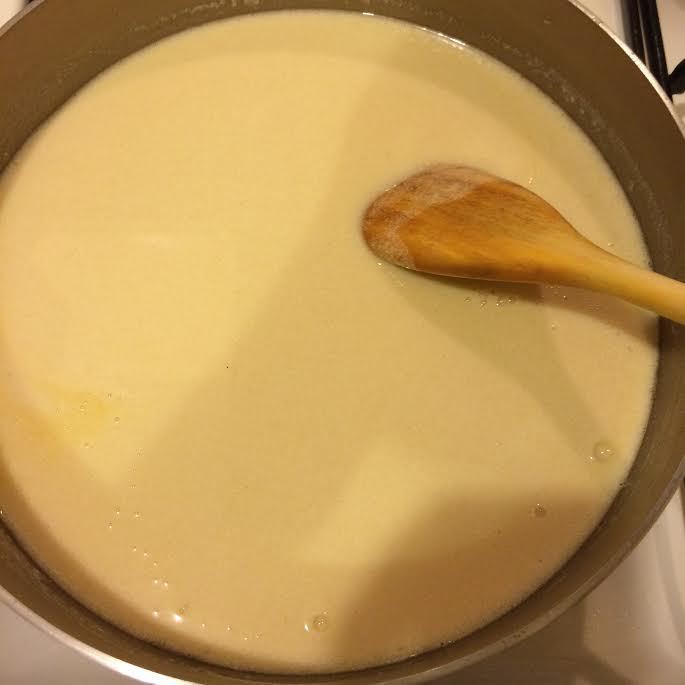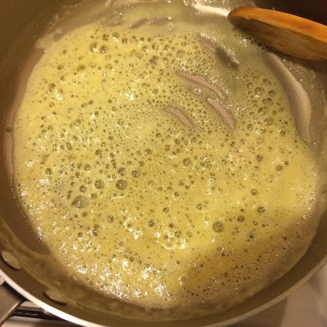 Соус: в сковороду с толстым дном насыпать муку и добавить сливочное масло. Помешивая довести до светло-коричневого цвета.