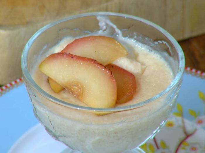 Застывшую панна котту подавать с карамельным яблочным соусом.