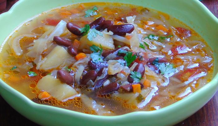 Добавьте в суп помидоры и фасоль, готовьте еще 7 — 10 минут. Выключите огонь, накройте крышкой и дайте настояться минут 5.