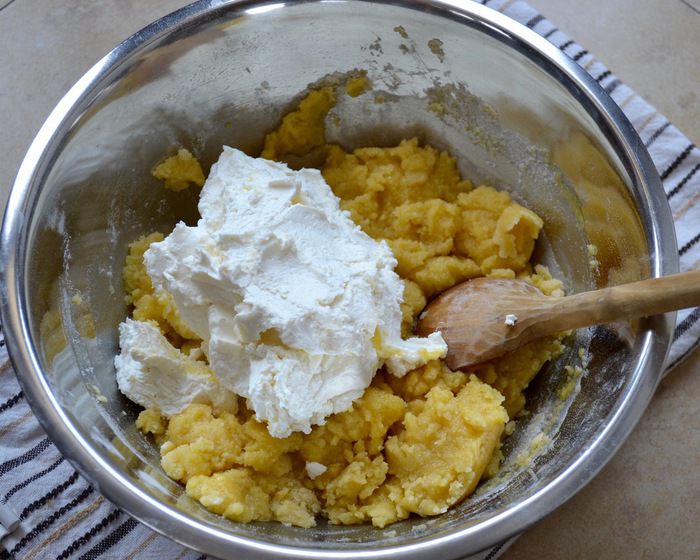 Творог можно протереть через сито, а можно взбить в блендере. Добавить к остальным ингредиентам и замесить тесто.
