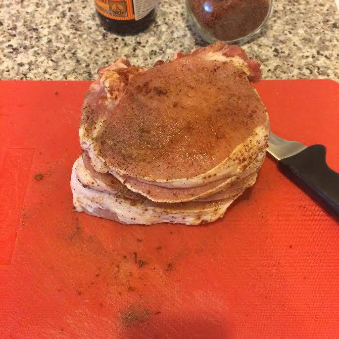 Натереть солью, перцем, вустерширским соусом и сухой аджикой. Оставить на 10 минут.