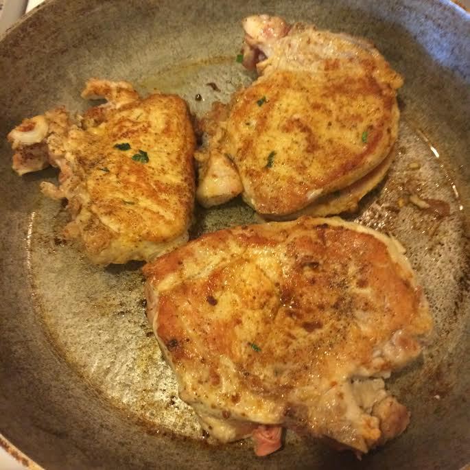 Духовку нагреть до 180°С. Сковороду разогреть, добавить 2 ст. л. масла и обжарить мясо на сильном огне с двух сторон. (по 3 — 4 мин с каждой стороны). Затем эту же сковороду закрыть фольгой и отправить мясо в духовку, жарить до готовности.