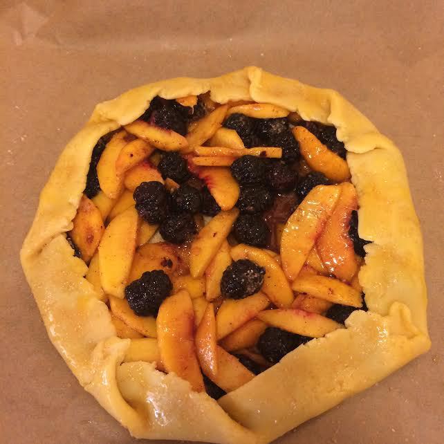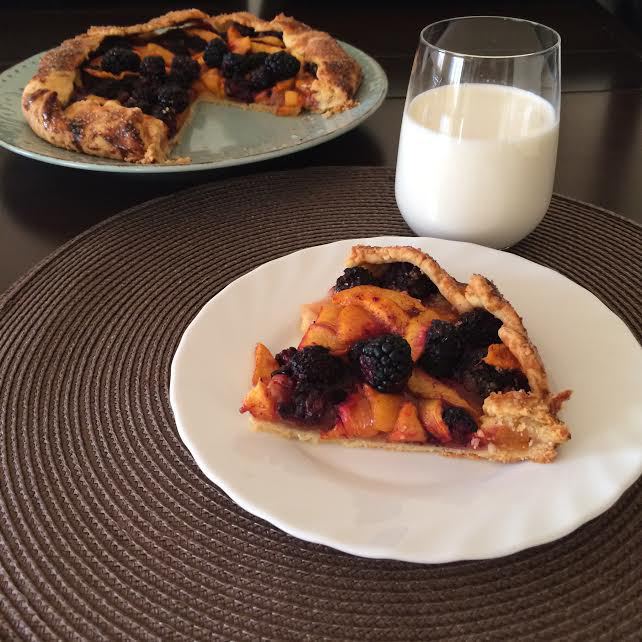 Духовку нагреть до 190°С. Нектарины нарезать, добавить ежевику, сахар, крахмал, ванильный экстракт, цедру лимона, корицу, соль и аккуратно перемешать.