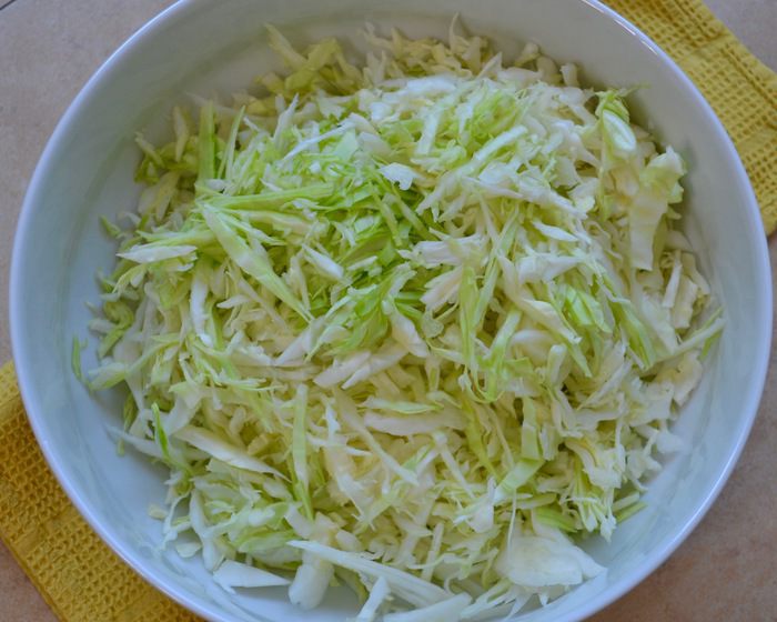 Капусту тонко нашинковать. Сейчас в сезон молодой капусты салат получается особенно вкусным!