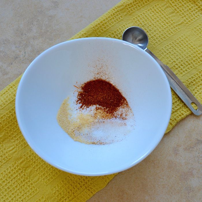 Отдельно в мисочке смешать соль, сахар, перец, порошок чесночный. Должна сказать, что на мой вкус все специи подобраны идеально, но Вы можете попробовать что-то добавить или убрать и на свой вкус.
