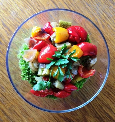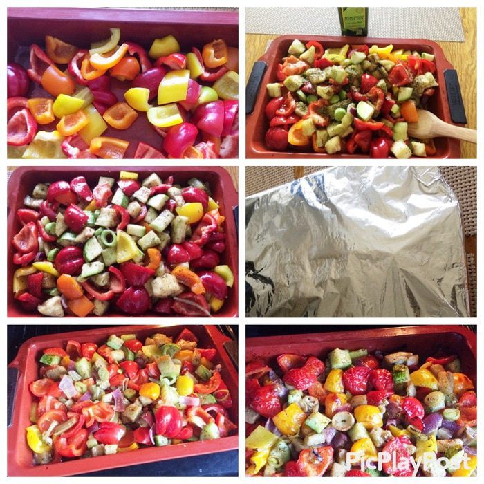 Накрыть форму фольгой и отправить овощи выпекать минут 30, при температуре 160 — 180°С. Спустя 30 минут снять фольгу и дать овощам подрумяниться еще минут 10 — 15 (следим за духовкой).