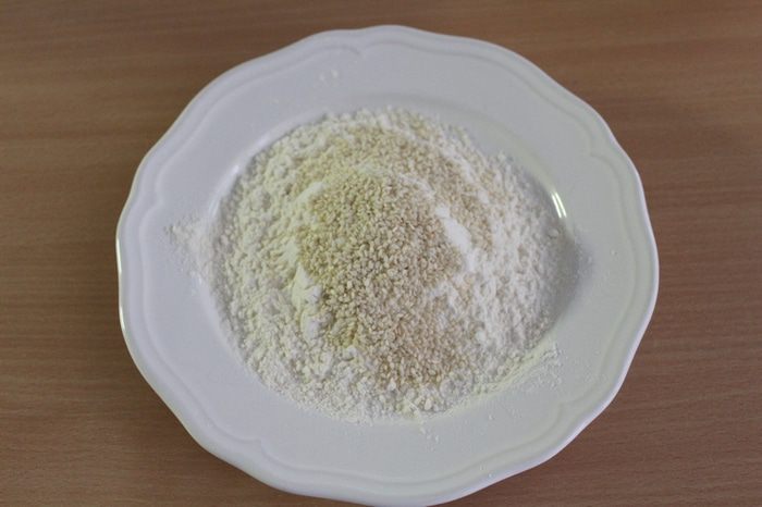 Смешать муку с кунжутом.