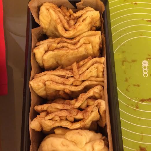 Форму смазать маслом, выложить квадраты в форму, накрыть полотенцем и дать подойти 30 — 40 минут.