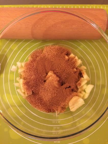 Начинка: яблоки мелко нарезать, смешать с сахаром и корицей.