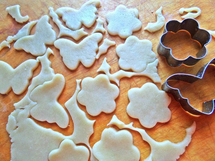 Верх украсить фигурками из теста.