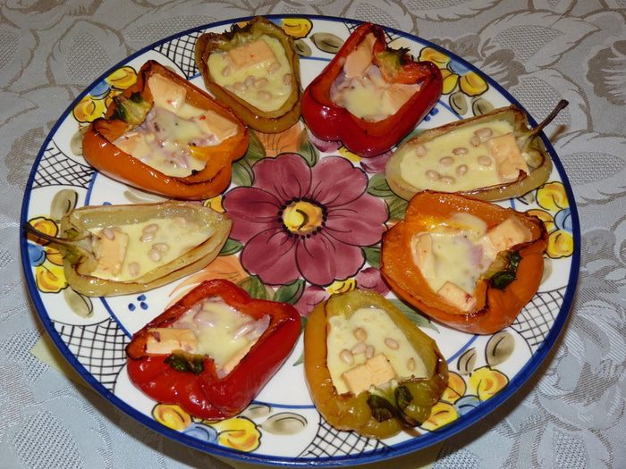 Добавить в каждую шарики моцареллы и отправить в духовку на 5 минут.