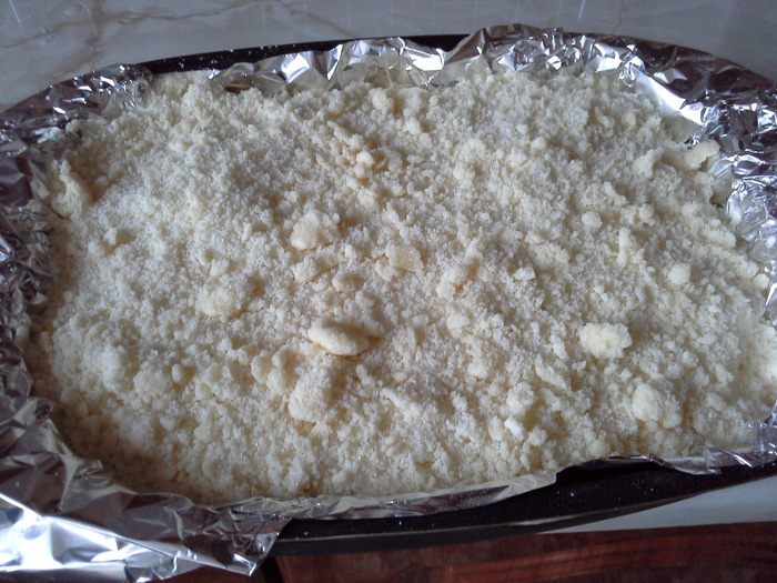 На творожный слой выкладываем половину штрейзера,