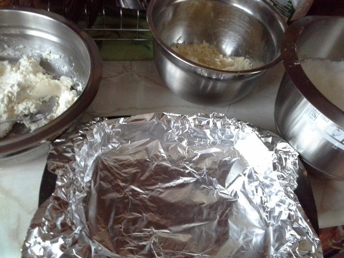 В форму вылить половину теста,