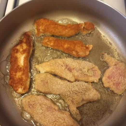 Филе обвалять: 1) мука, 2) яйца, а потом в сухарях. Обжарить до золотистого цвета.