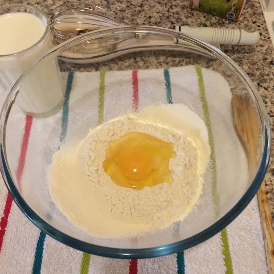 Продукты должны быть комнатной температуры. Просеять муку с солью, сделать в середине углубление и добавить яйцо. Хорошо перемешать деревянной ложкой.
